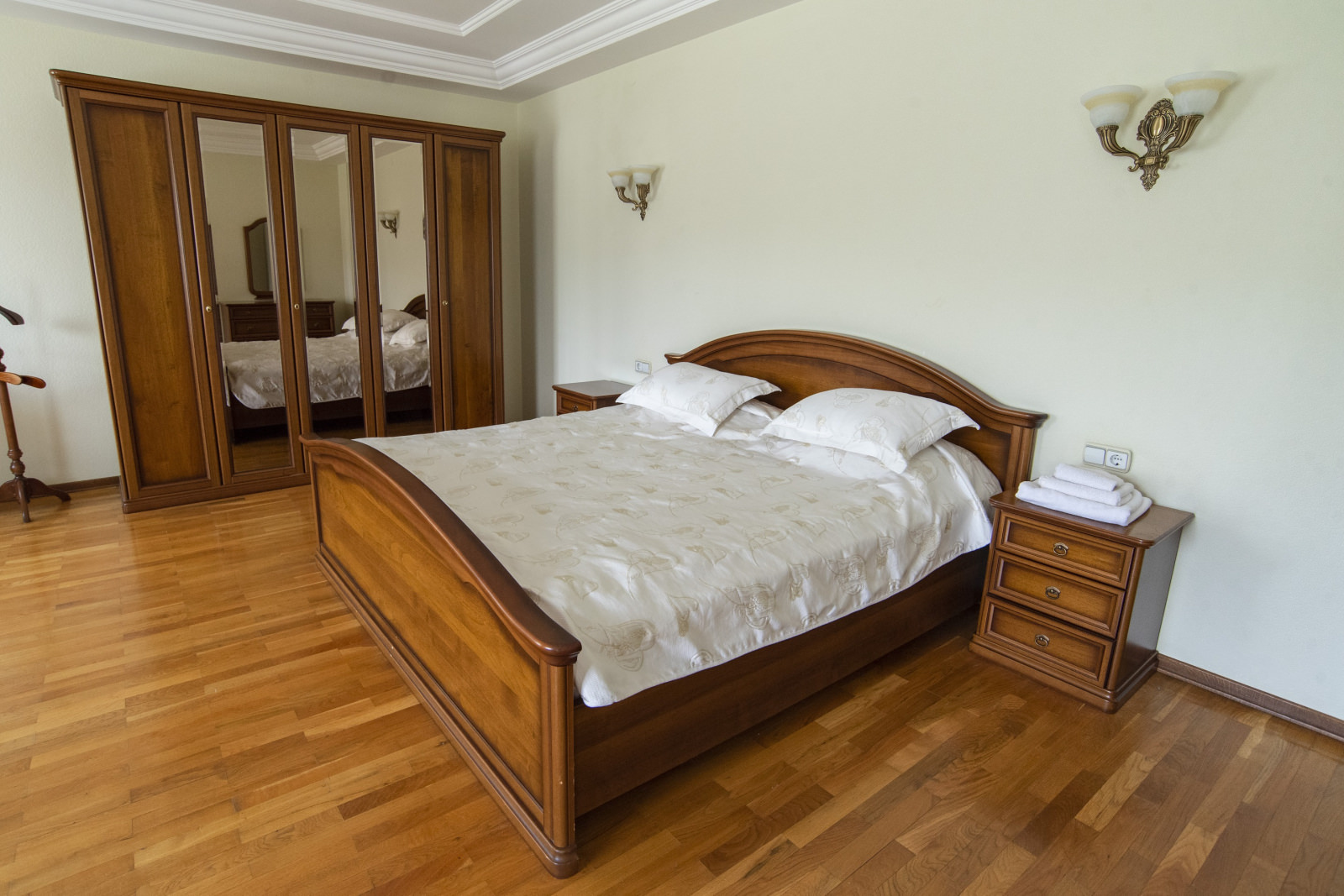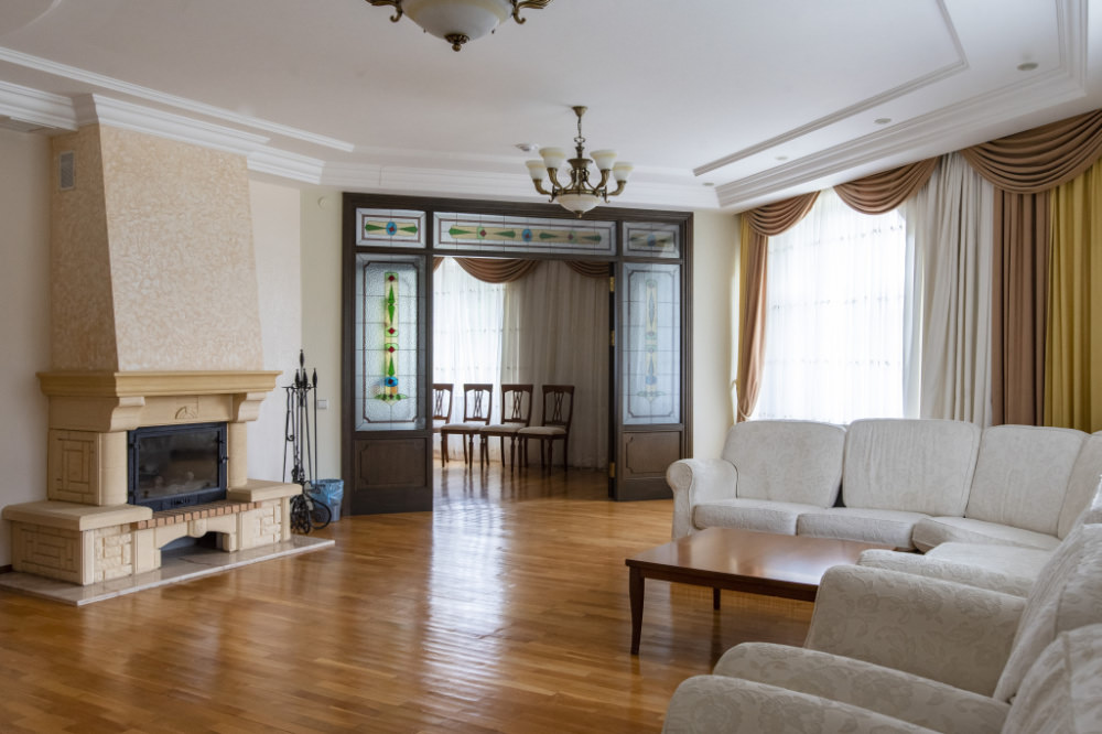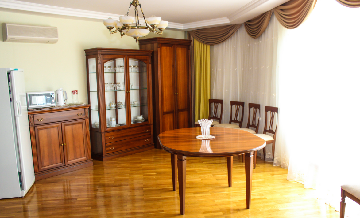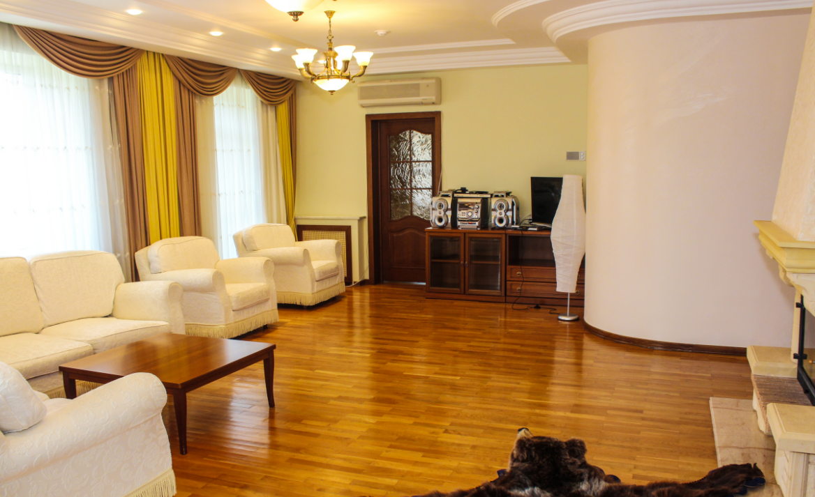 1 осн. место. 3 доп. места. Мебель: диван раскладной, кресла, кровать двуспальная, набор мягкой мебели, прикроватные тумбочки, стол, столик журнальный, столик туалетный, стулья, шкаф, шкаф для посуды. Оборудование: бильярд, камин, кондиционер, микроволновая печь, набор посуды, телевизор, холодильник, электрочайник. Санузел. Сервис: Wi-Fi бесплатно, смена полотенец, смена постельного белья, уборка номера.