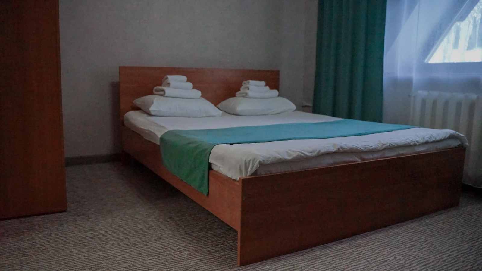 1 осн. место. 1 доп. место. Мебель: вешалка, кровать двуспальная, столик журнальный, шкаф. Оборудование: телевизор, холодильник, чайный набор посуды, электрочайник. Санузел. Сервис: Wi-Fi бесплатно, смена полотенец, смена постельного белья, уборка номера.