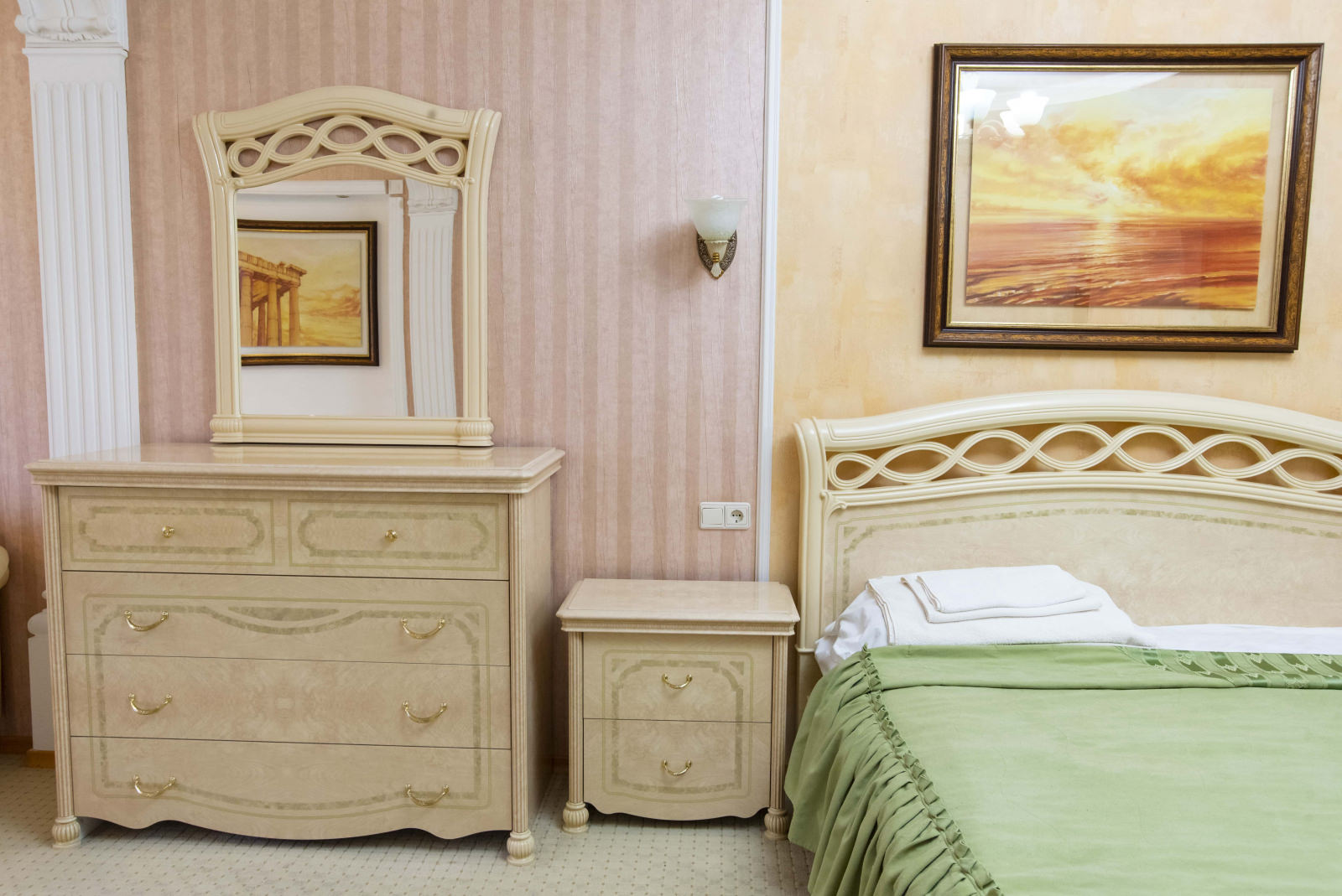 1 осн. место. 2 доп. места. Кухня. Мебель: вешалка, диван раскладной, зеркало, комод, кресла, кровать двуспальная, прикроватные тумбочки, стол, столик журнальный, стулья, шкаф, шкаф для посуды. Оборудование: набор посуды, плита электрическая, телевизор, холодильник, электрочайник. Санузел: с душевой кабиной, фен. Сервис: Wi-Fi бесплатно, смена полотенец, смена постельного белья, уборка номера.